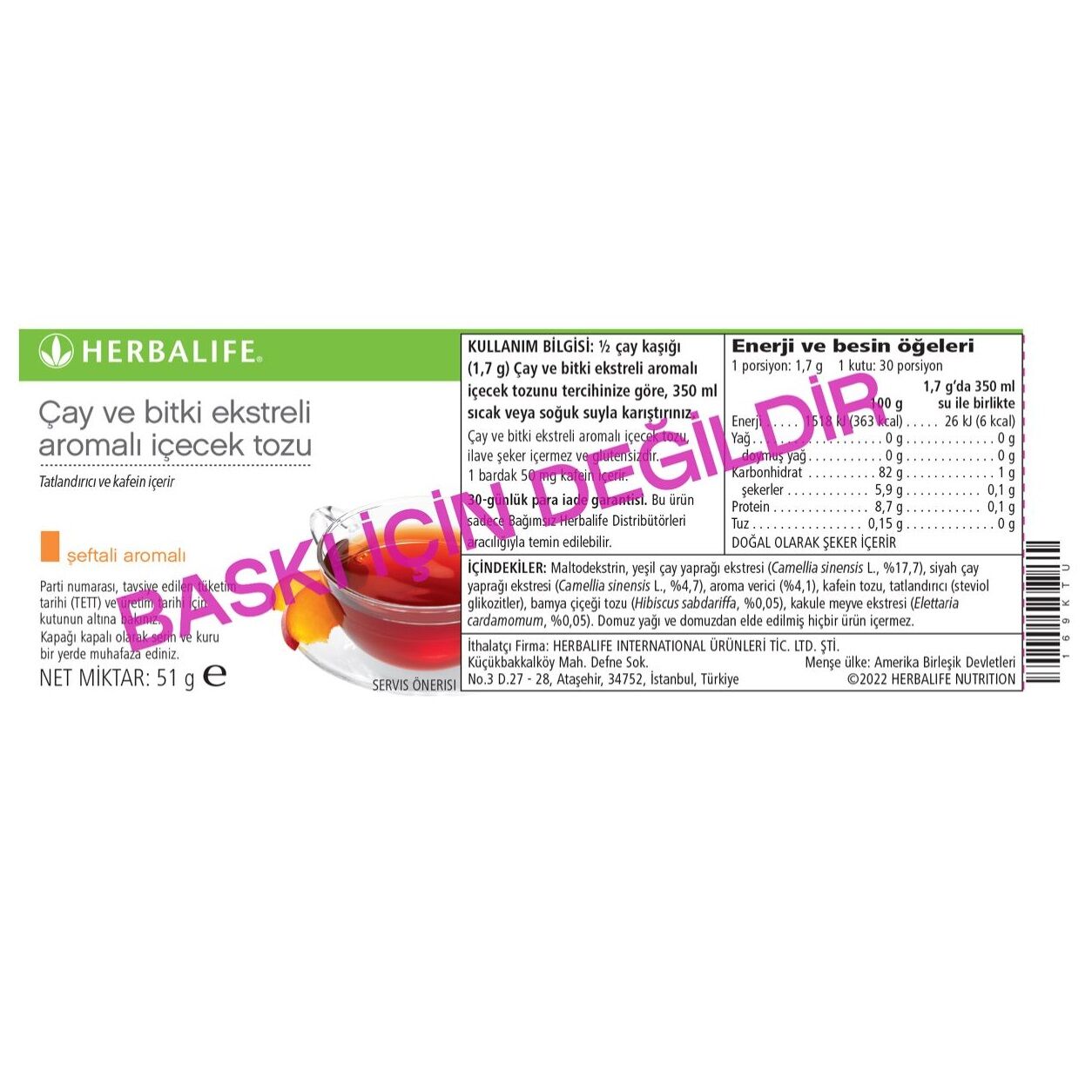 Herbalife Çay ve Bitki Ekstreli Aromalı İçecek Tozu-Şeftali Aromalı 51 gram