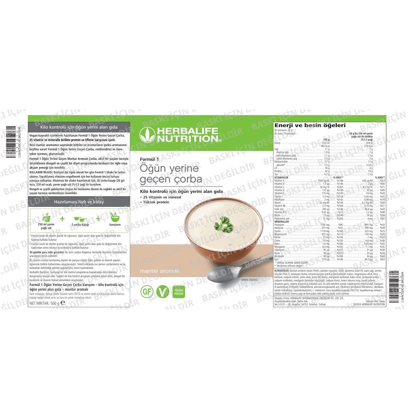 Herbalife Formül 1 Öğün Yerine Geçen Çorba-Mantar Aromalı 500 gram