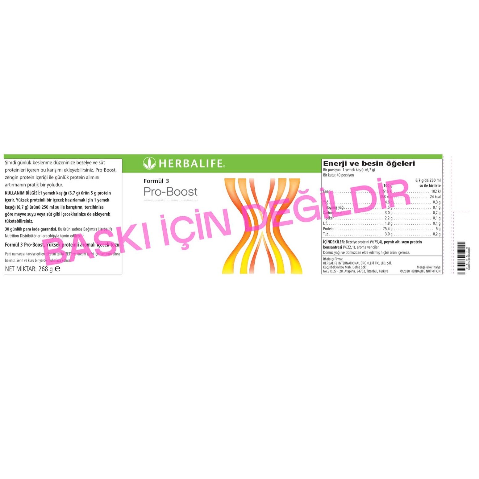 Herbalife Formül 3 Pro-Boost Yüksek Proteinli Aromalı İçecek Tozu 268 gram