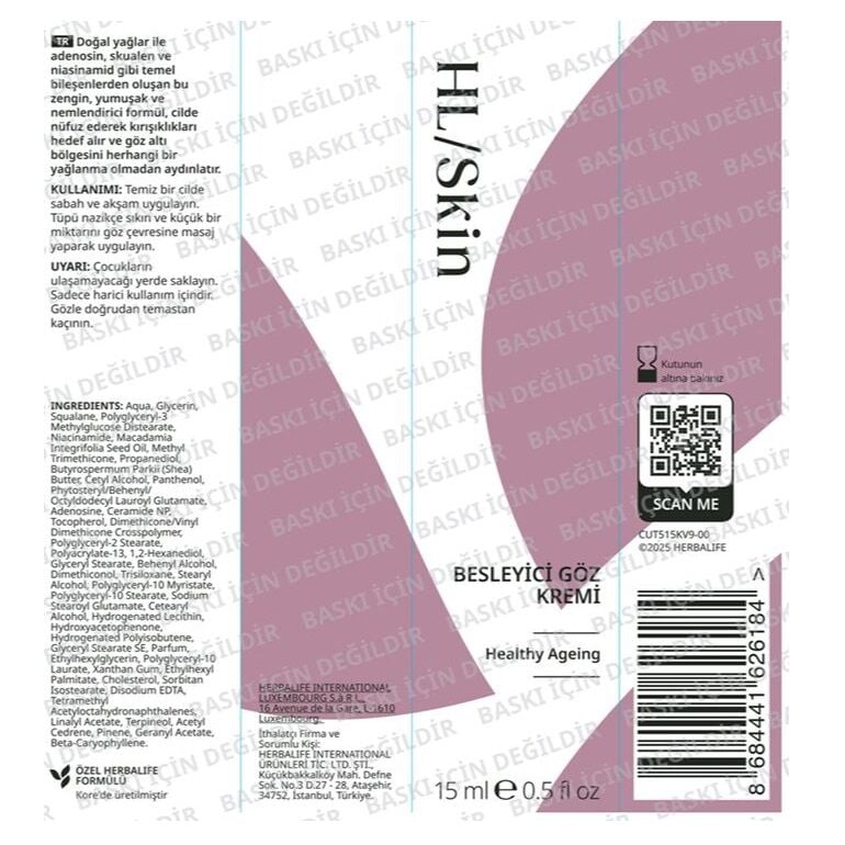 Hafif ve hızlı emilen HL/Skin Besleyici Göz Kremi, gelişmiş Kore cilt bakımı bilimi ile desteklenmiş ve adenozin, niasinamid, skualen ve doğal yağlar ile zenginleştirilmiştir.