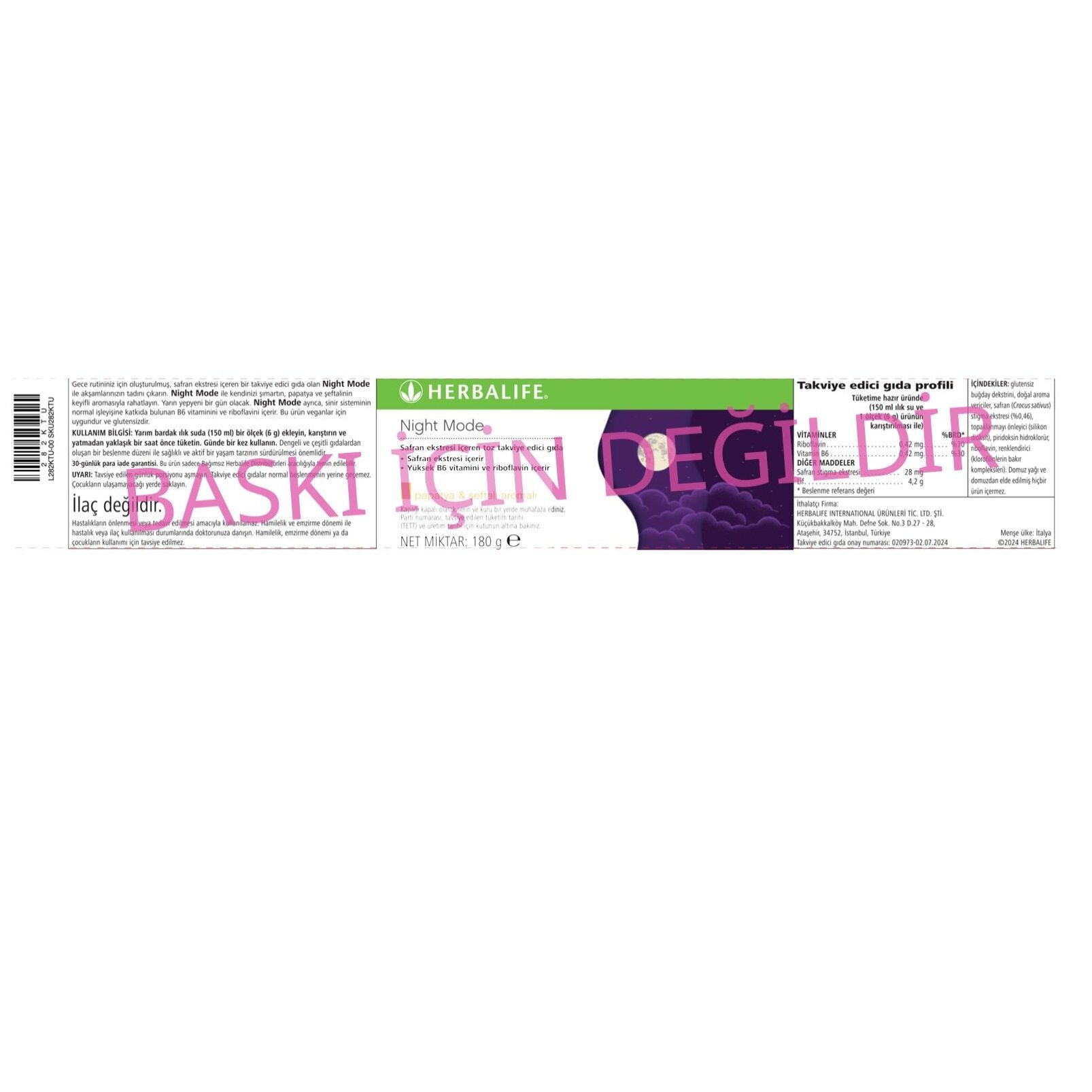 Herbalife Night Mode Safran Ekstresi İçeren İçecek Tozu-Papatya ve Şeftali Aromalı 180 gram