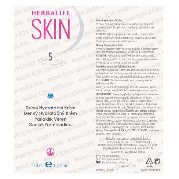 Günlük kullanım için uygundur. En iyi sonuçları elde etmek ve cilt rutininizi tamamlamak için Herbalife SKIN Parlaklık Veren Günlük Nemlendirici’yi sabahları kullanın.