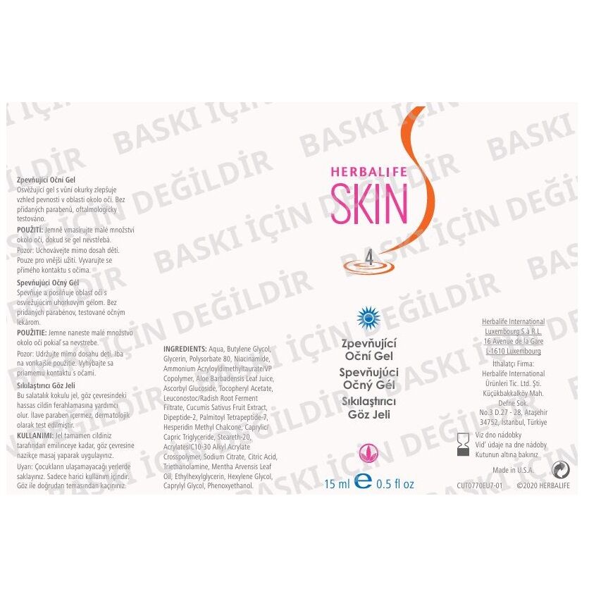 Günlük kullanım için uygundur. En iyi sonuçları elde etmek ve cilt rutininizi tamamlamak için Herbalife SKIN Sıkılaştırıcı Göz Jeli’ni sabahları kullanın.