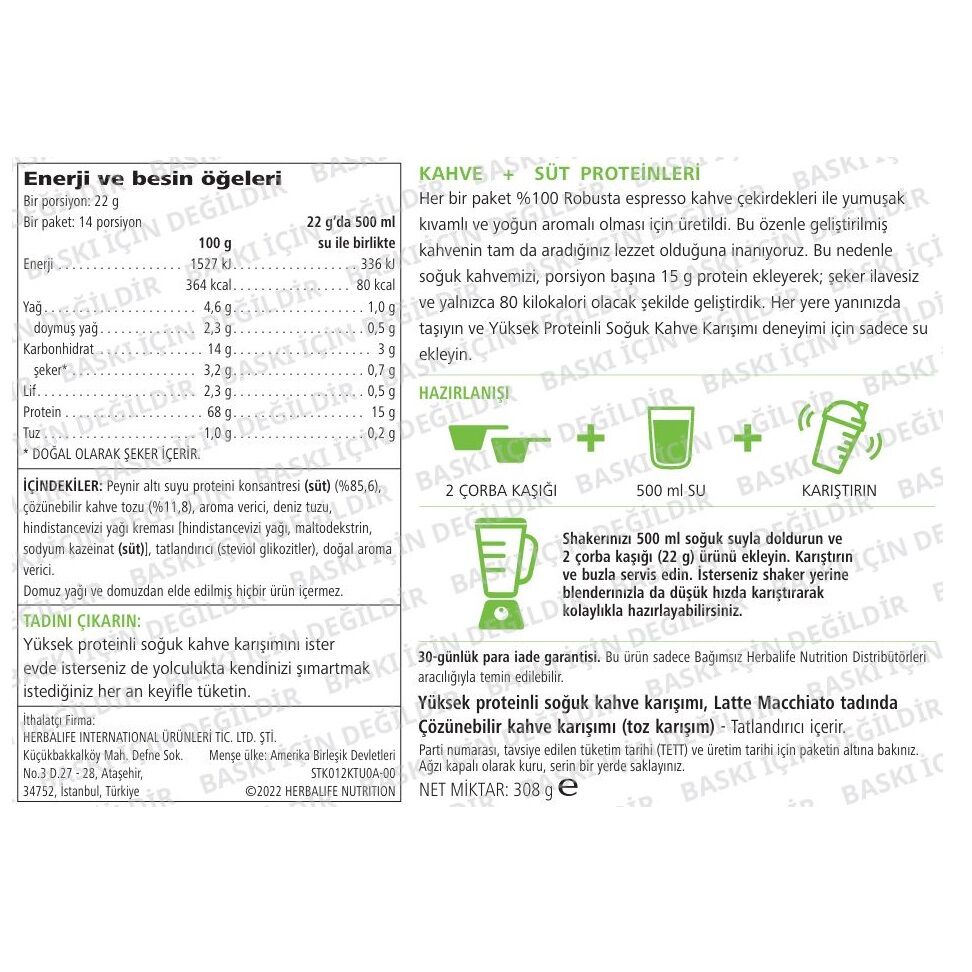 Herbalife Yüksek Proteinli Soğuk Kahve Karışımı-Latte Macchiato Aromalı 308 gram